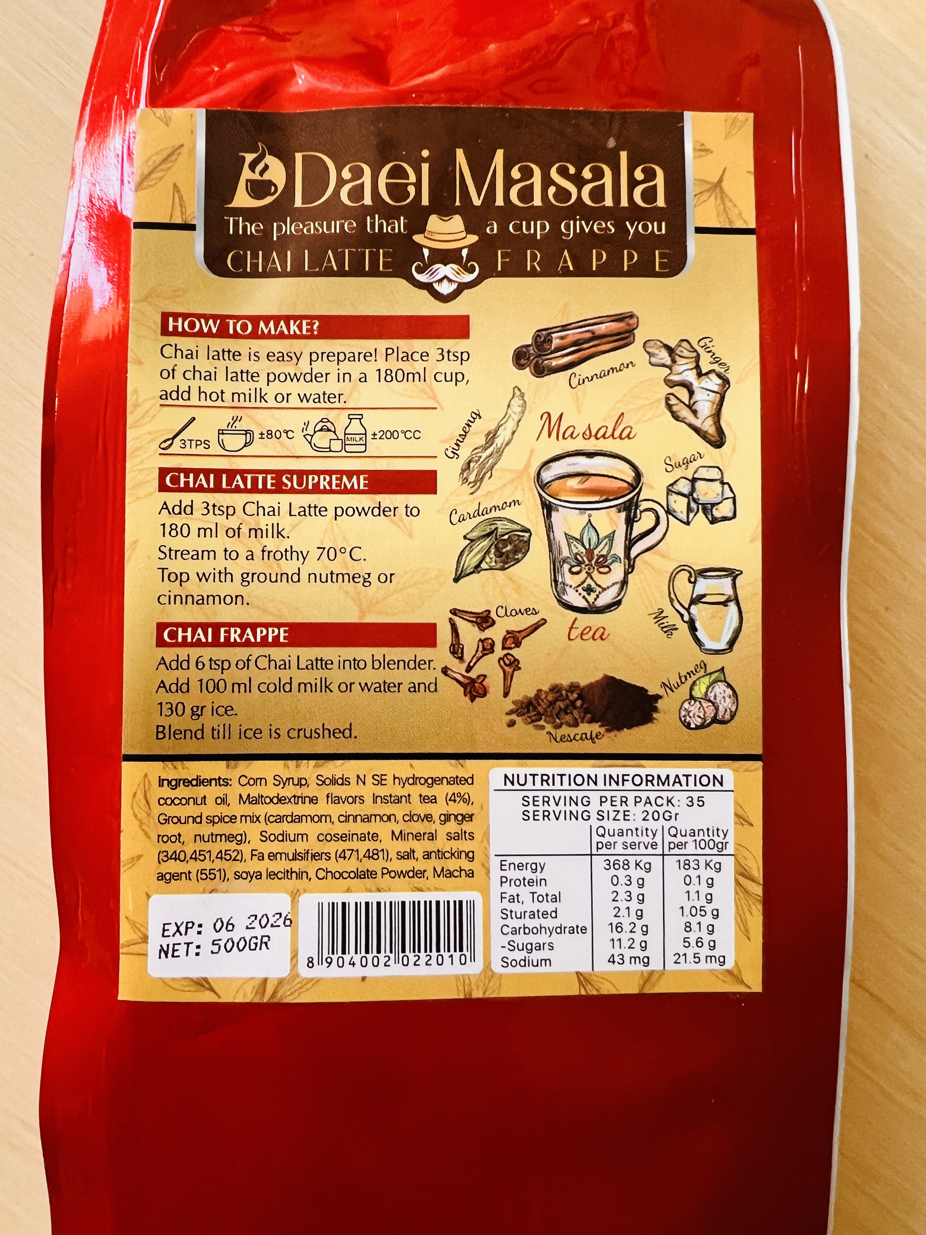 هل ،دارچین ، میخک ، شیر ، شکر،جنسینگ ، نسکافه زنجبیل،