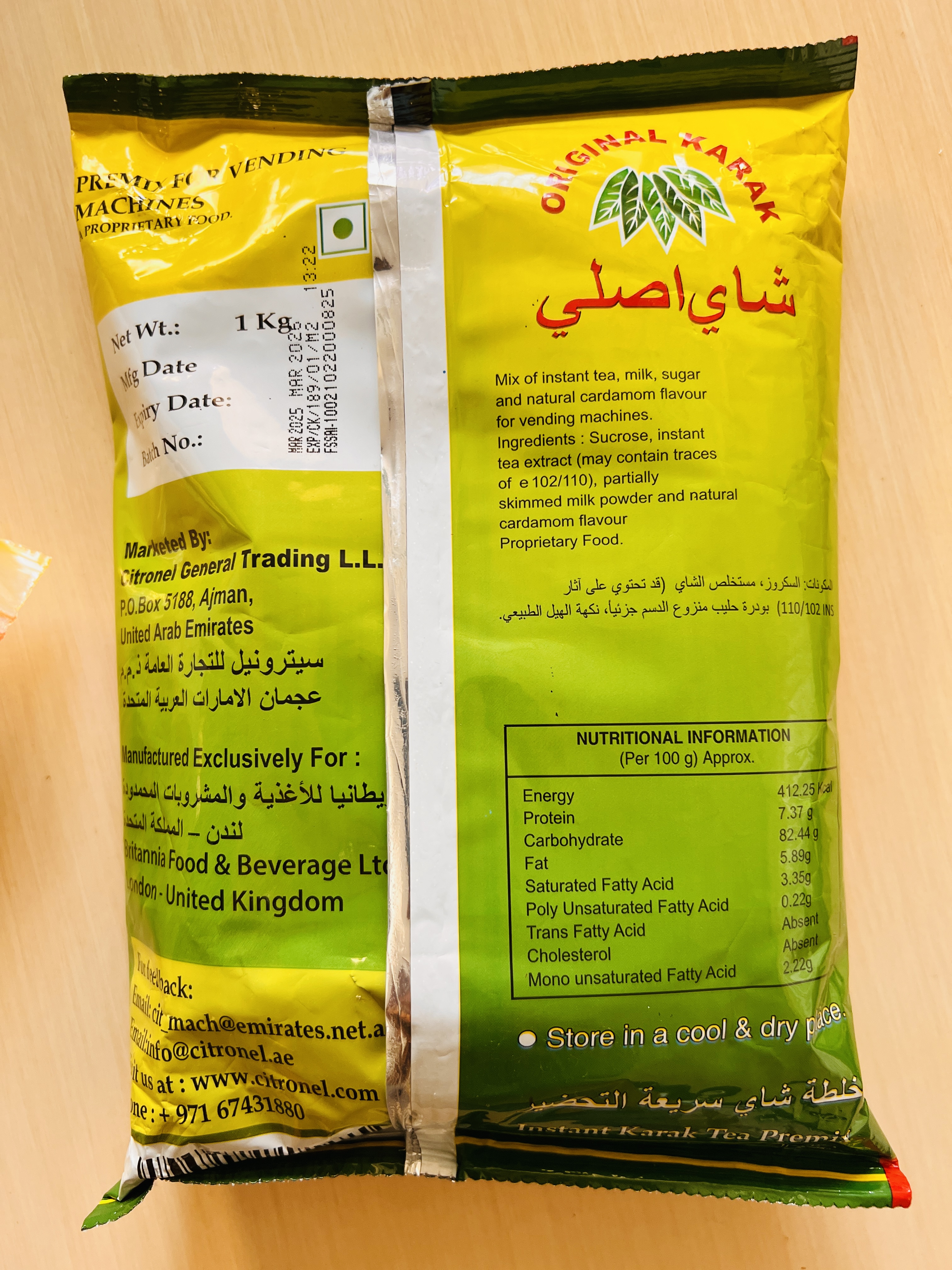 مشخصات اصلیمقدار / ۱ کیلویی / ۵۰۰ گرم / ۲۵۰ گرممشخصات فرعیانقضا۲۰۲۶ترکیباتچای ، پودر هل ، شکر و شیرساختهندمناسببرای صبحانه،رفع خواب آلودگی،انرژی زا، نشاط بخش