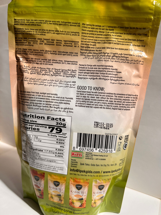 ترکیبات: ترکیبی از چای سیاه ، شیر ، شکر و ادویه هایی مانند هل، دارچین، میخک و جوز هندی و هل است