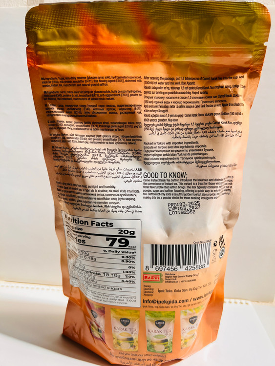 ترکیبات: ترکیبی از چای سیاه ، شیر ، شکر و ادویه هایی مانند هل، دارچین، میخک و جوز هندی و زعفران است